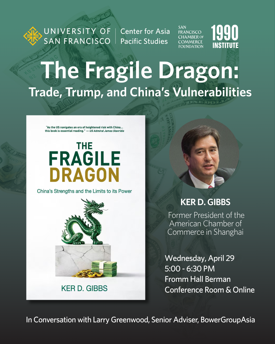 | | | JOIN US AND 1990 INSTITUTE BOARD MEMBER KER GIBBS — BOOK TALK: “THE FRAGILE DRAGON: TRADE, TRUMP, AND CHINA’S VULNERABILITIES” ON APRIL 29 - In this talk presented by the University of San Francisco (USF) and co-sponsored by the 1990 Institute and the San Francisco Chamber of Commerce, Ker Gibbs introduces his new book, “The Fragile Dragon,” which offers a nuanced portrait of China and its complex relationship with the West through the lens of his long and colorful history working in Shanghai. Sign up to join online or in person at USF on April 29 at 5:00–6:30 pm PT.