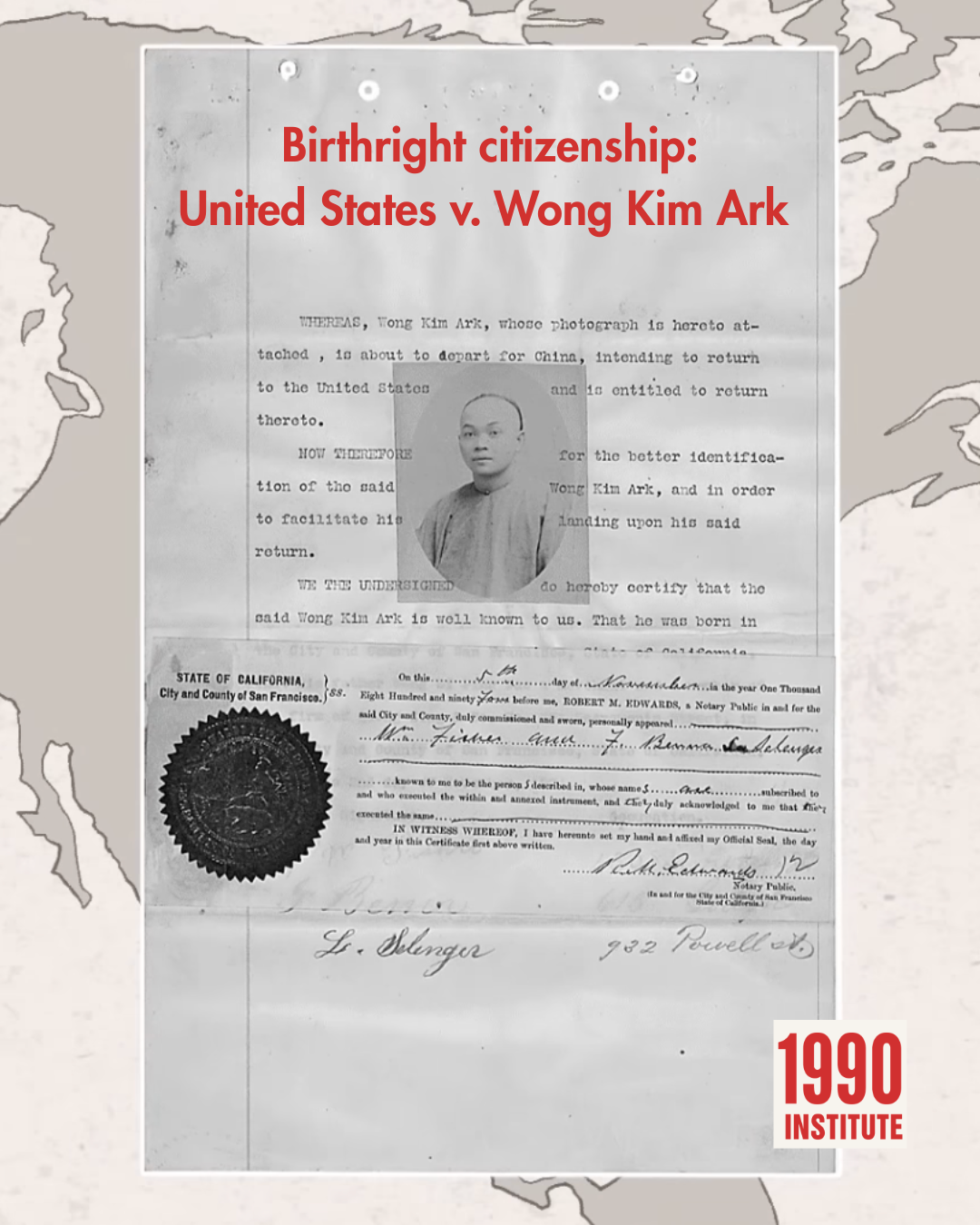 | | | | Dear Friends, On the first of this month, the U.S. Supreme Court held a hearing on Trump v. Barbara, a nationwide class action lawsuit. Legal experts say that President Trump’s executive order attempting to end birthright citizenship for children of undocumented or temporary visa holders is unconstitutional, citing the landmark United States v. Wong Kim Ark case from 1898. As we await the Supreme Court’s final ruling (expected by late June or early July), let us remember how this 128-year-old case was a victory not just for Wong Kim Ark and future generations of Asian Americans, but for all children regardless of their parents’ citizenship status. Interested to learn more about United States v. Wong Kim Ark and the history of anti-Asian sentiment in the U.S.? Check out our quick explainer and our video titled "Exclusion: The Shared Asian American Experience" on YouTube. SAVE THE DATE Our 2026 Roots & Wings Youth Symposium will be held on Saturday, September 19, at the College of San Mateo in the San Francisco Bay Area. If you missed last year’s event, you can check out more details here and view a recap video here. We are excited to share more details on this year’s event over the coming months! Stay tuned. LAST CALL FOR ESSAY CONTEST SUBMISSIONS The deadline has been extended for the China Focus Essay Contest. Enter by Friday, April 17, at 11:59 pm PT. Visit our website for the official rules and the opportunity to win up to $1,000. SUPPORT THE 1990 INSTITUTE Thank you for your continued support. If you would like to make a charitable donation of any amount to help us continue our work, we would be grateful for your support. You can also explore past newsletter issues and subscribe to stay connected. |